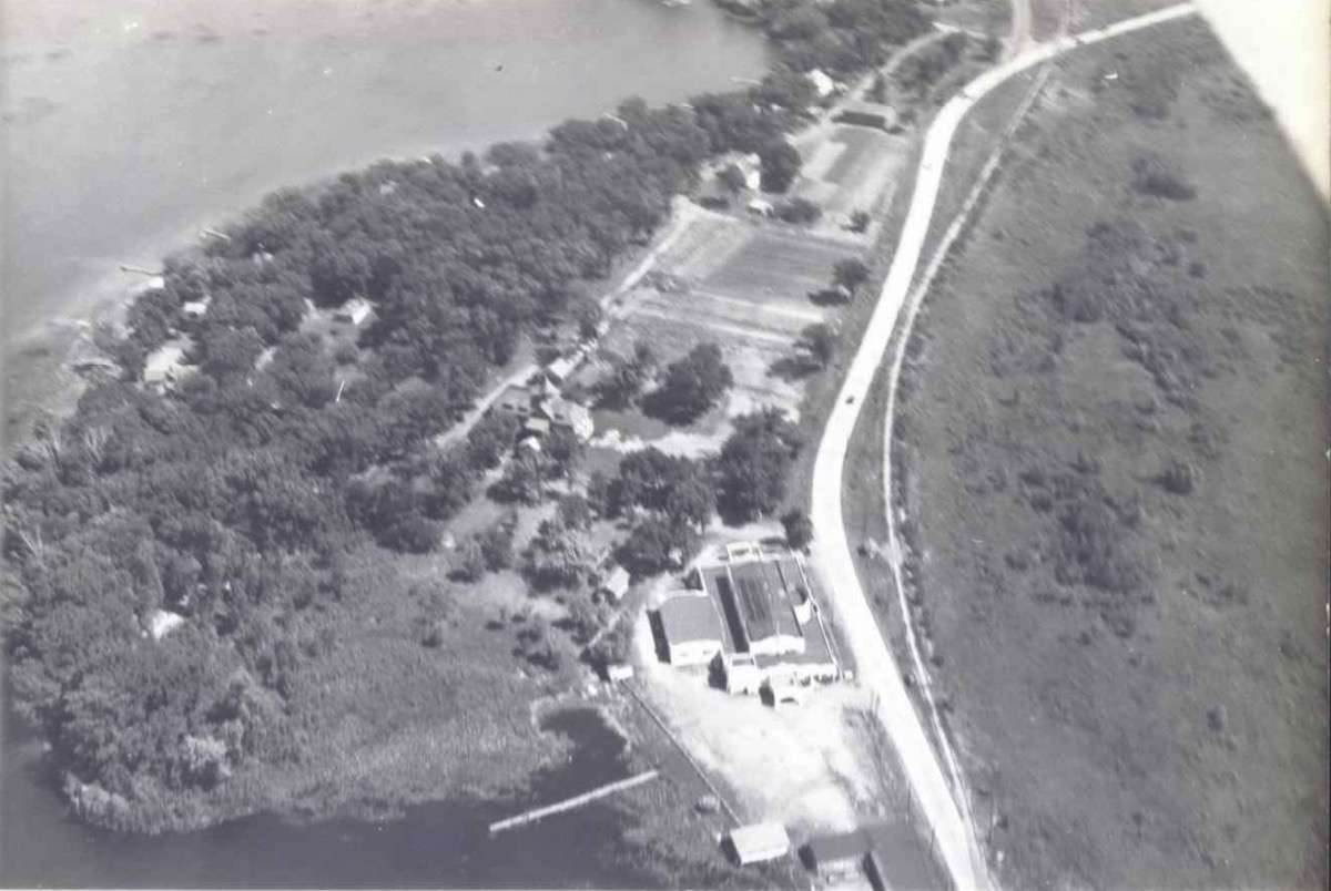 Aerial view of Cottage Park, circa 1930, looking South from the Plantation nightclub.